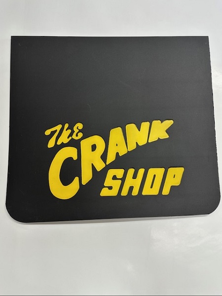 The Crank Shop Snow Flap is available in two colors black with red writing or black with yellow writing. The snow flap is not predrilled for mounting. You will need to drill the mounting holes for the snow flap.
